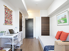 | 居室設備 | エアコン、TVモニター付きインターホン、バス・トイレ別、温水洗浄便座、独立洗面台、浴室乾燥機、室内洗濯機置場、IHコンロ、高速光インターネット、収納、バルコニー、照明器具 ※家具家電:2ドア冷凍冷蔵庫、洗濯機、ベッド、デスク、チェア、チェスト、テレビ台 |